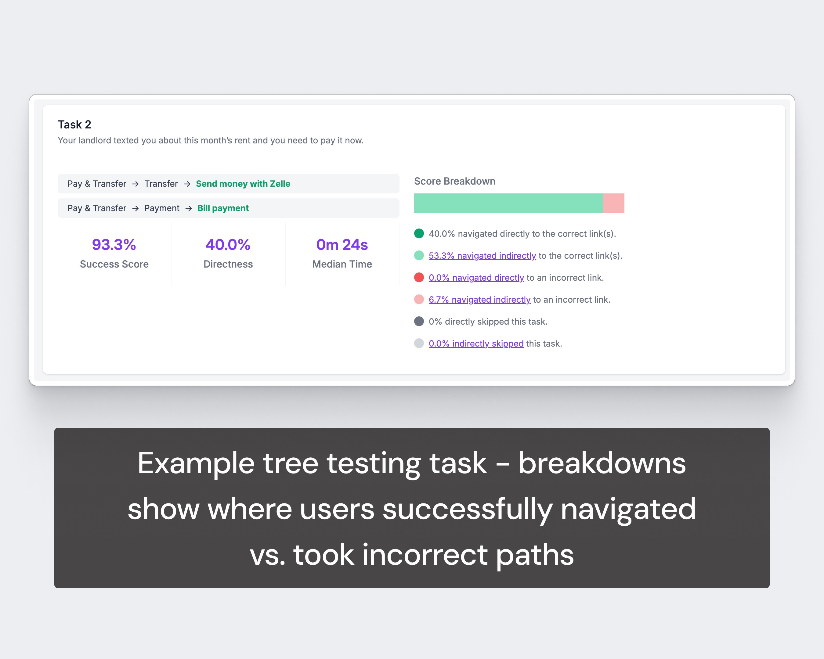 Solution: 62% found Spending Tracker correctly, but 38% opted for manual review. This wasn't a navigation problem; users just couldn't tell what each tool did from names alone. We addressed this through visual differentiation (icons showing list vs. charts) and surfacing features more prominently, rather than restructuring the IA.
